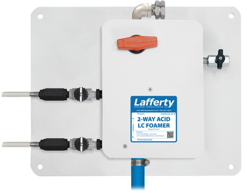 Lafferty Acid Foamers produce rich, clinging foam using available water pressures and compressed air. This model can apply up to two chemicals.