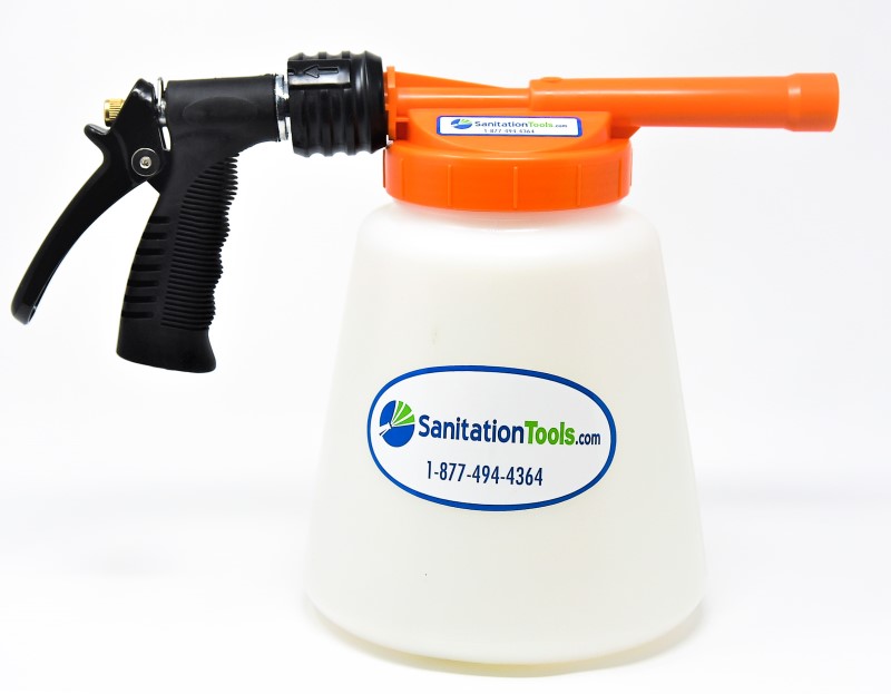 Hydrofoamer 481 with a Orange Lid designed to provide color-coded identification of the specific chemical being applied through the unit. SanitationTools.com has brought a unique innovation to the world of hand held foamers. The standard black lid Hydrofoamer 481 has been a mainstay in the sanitation industry for years. The Orange Lid Hydrofoamer 481 is identical to the black lid unit except for the color. Enjoy all of the benefits of the Hydrofoamer 481 with the ability to properly identify chemicals by the color of the lid. For example, if you use an orange colored detergent/disinfectant cleaner the Orange Lid Hydrofoamer 481 is an excellent way to alert your employees as to what product is being used. Many food processing facilities use color coded techniques to help insure the correct product is being used for the correct application. Isn't it time you did too?
