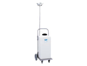 The Portable 5 Gallon 455 4-Way Fogger is a chemical atomizer that uses compressed air (70 CFM @ 80 PSI) and venturi action to draw ready-to-use chemical solution from a user-supplied chemical pail on the all stainless steel cart. It will atomize the solution and project it as fine, "dry" fog particles in 4 directions up to 35 feet. This unit features a telescoping mast and can also be used as a 2-Way fogger.
