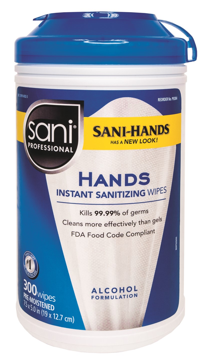 (300) SANI-HANDS® wipes per tub, (6) tubs/case. Wipe Size: 7.5” x 5.375”