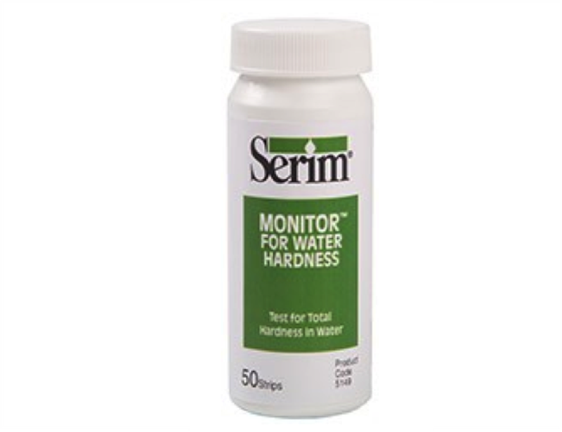 Serim Monitor strips are supplied in ready-to-use form. When placed in contact with the sample according to the directions for use (see below), the indicator pad changes color relative to the concentration of total hardness expressed as CaCO3. The strips yield a semi-quantitative estimation with color block increments of 0, 25, 50, 120, 250, and 425 ppm.